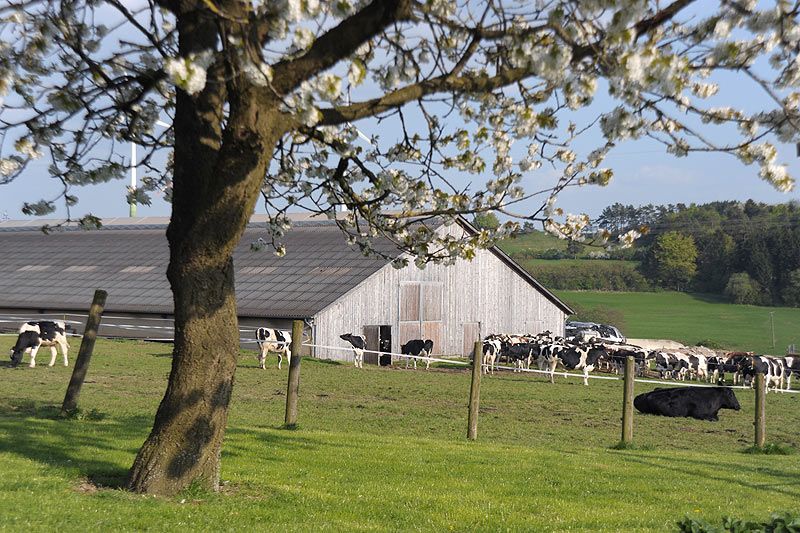 Wir sind ein Familienbetrieb in der 3. Generation. Wir melken ca. 110 Kühe und ziehen unseren weiblichen Nachwuchs selber auf. Auf unseren Flächen bauen wir unser Futter größtenteils selber an, Gras, Mais, Weizen und Raps für den Verkauf.