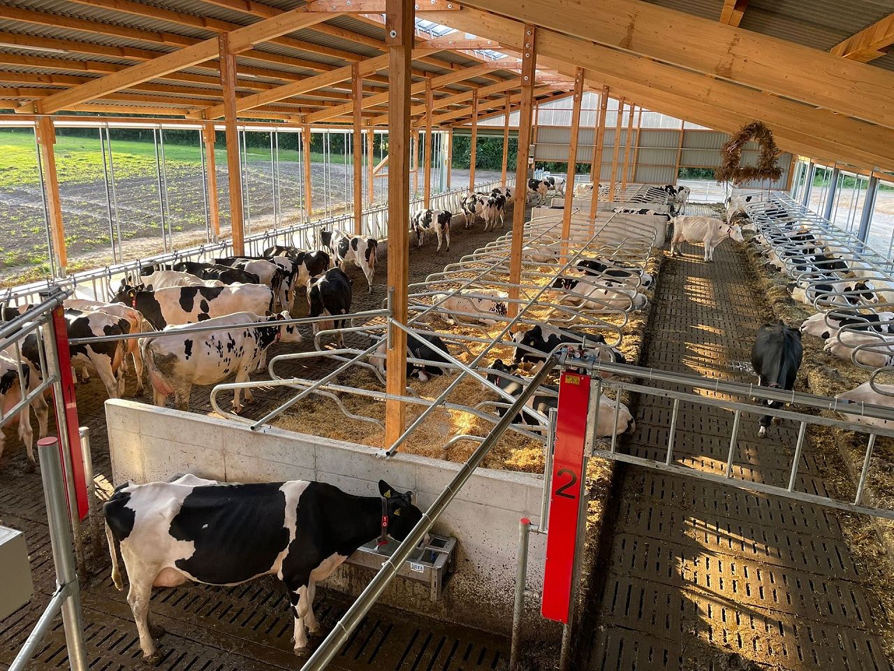 Wir sind Marlen und Jonas und führen einen Familienbetrieb mit 120 Milchkühen, die von 2 Melkrobotern gemolken werden. Außerdem bewirtschaften wir 200 ha Land, auf dem Futter für unsere Kühe und Getreide angebaut wird.
